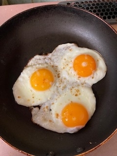 目玉焼き 趣味 2021.06.07 去る日の朝食卵3個で目玉焼き。 意識したわけじゃ無いけれどなんとなく人の顔に見えてきた。 偶然だけど面白い!(フフフ) これまでも石屋 これからも石屋 創業明治34年ふるかわ石材店