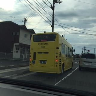 いのくまさんのバス! さぬきの話 2020.07.29 いのくまさんのイラストがか描かれた青色と↑黄色のバスが街中を走っているのは知っていましたが、目にしたのは初めてです。信号で停車中に車の中からパチリ!これまでも石屋 これからも石屋 創業明治34年ふるかわ石材店
