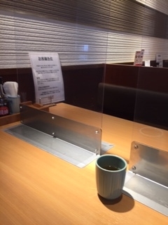 ここもまた 未分類 2020.08.05 外食は控えていますが、お昼時にお外でいたのでご飯食べに行きました。以前はなかった透明な衝立がテーブルに置かれていました。やはり世の中変わっていってるのね。これまでも石屋 これからも石屋 創業明治34年ふるかわ石材店