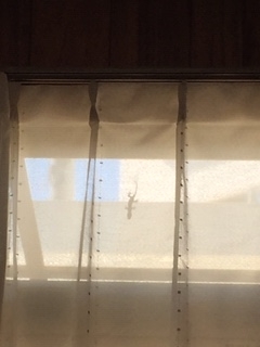 ↑目を凝らしたら見える生き物。トカゲではありません。ヤモリです。この所、午前中に姿を見せてくれます。カーテン開くと逃げられそうなのでカーテン越しにパチリです。これまでも石屋 これからも石屋 創業明治34年ふるかわ石材店